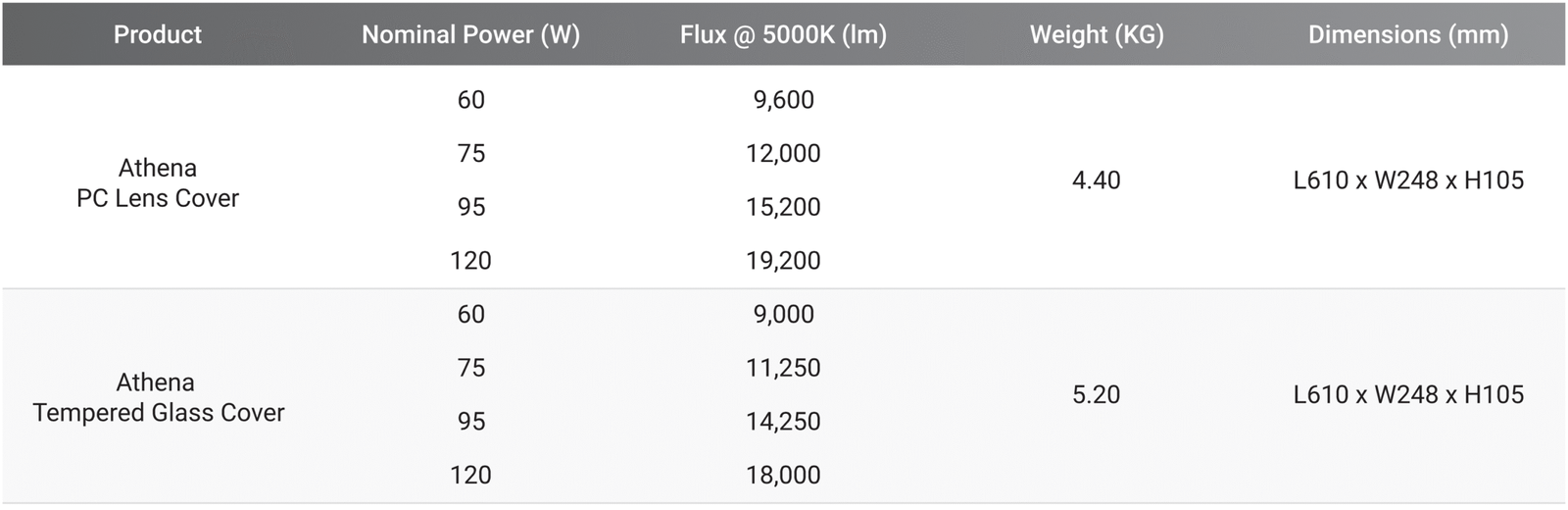 Athena, the first generation we try on multi-functional street lighting series, features with and without tempered glass options and suits diversified project requirements. This light have one lamp body which cover from 60W to 120W, It still have another 3 lamp bodies under develon.