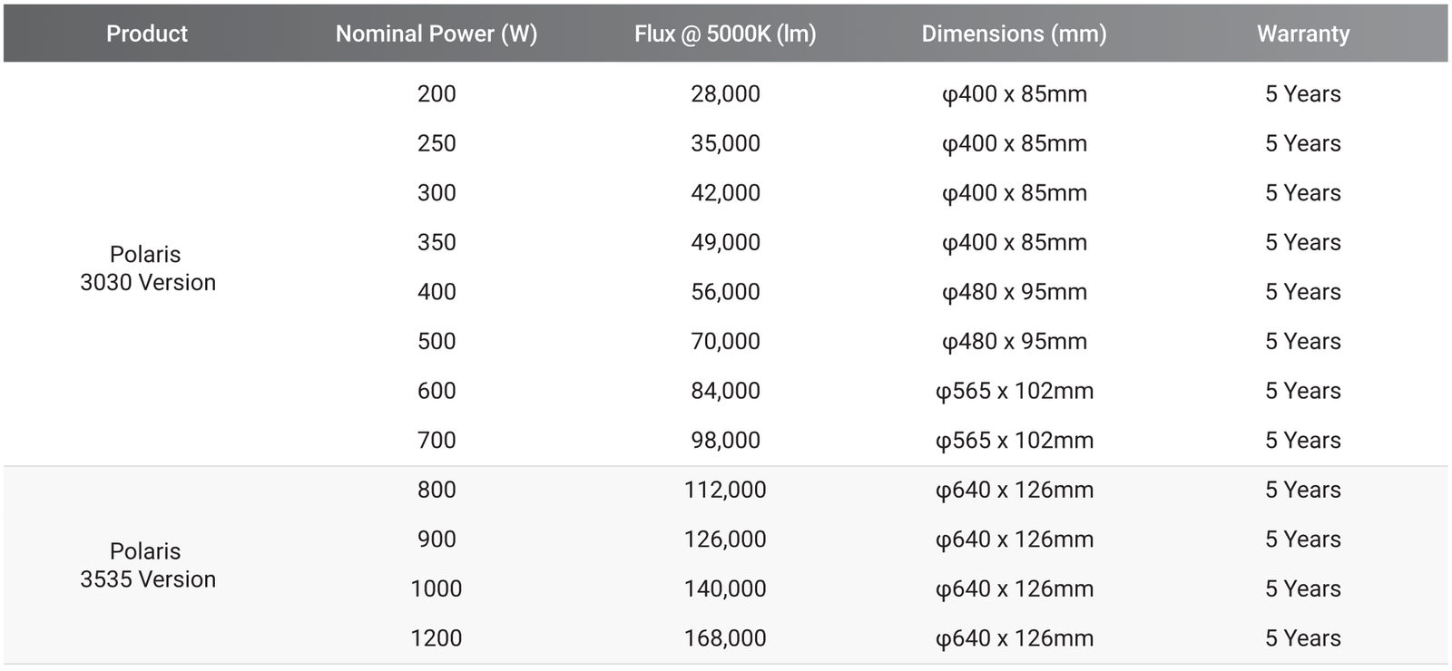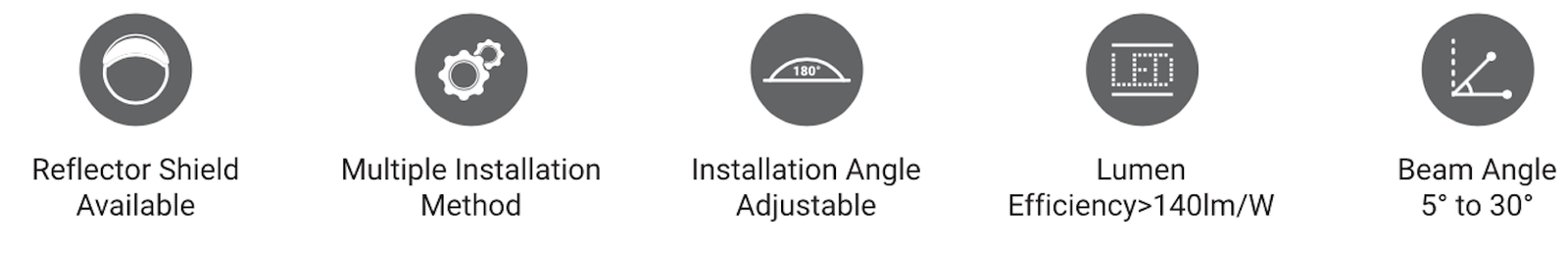 | Light Distribution | 5° / 10° / 15° / 20° / 30° |